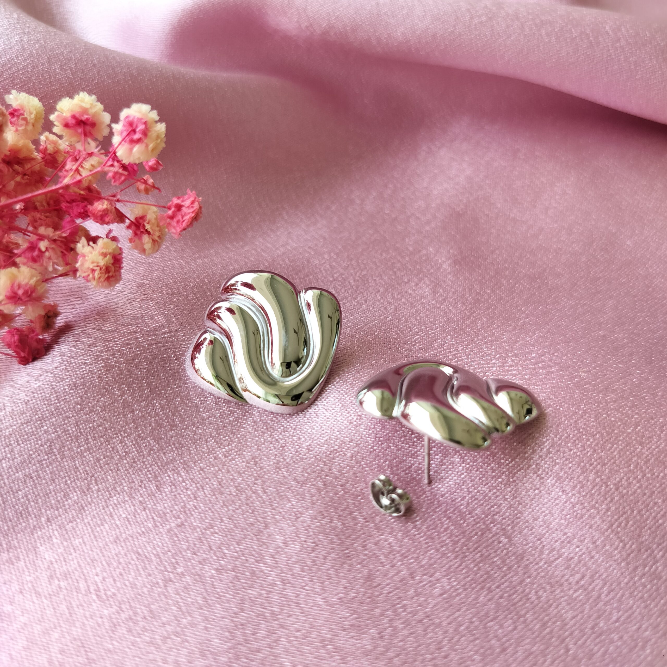 Exquisite Design & Premium Craftsmanship – Silver Wave Bloom Studs